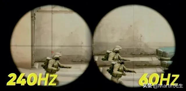 在慢动作下可以明显看出240Hz更加顺滑,而60Hz则会出现卡顿现象,这也就是很多人打不了射击游戏的罪魁祸首之一。这种卡顿和拖影造成的不真实感会给你的大脑判断造成负担,长时间游戏往往会感到头晕。