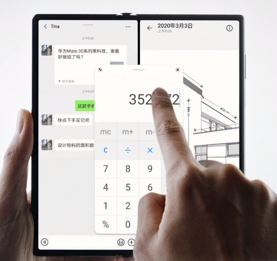 为了更好地灵活运用大屏幕的优点,华为公司MateXs还产生了便捷好用的聪慧分屏功能。根据侧栏的拖动,你也就可以在显示屏上并列运作2个详细的运用。值得一提的是,你要可以以悬浮球的方式,开启第三个运用对话框,并且可以随意拖拽,不危害当今的实际操作。